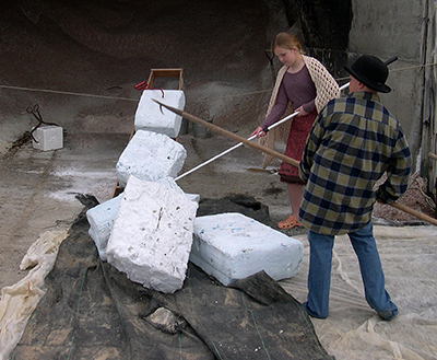 Moving Ice Onto the Conveyor and Into the Ice House Similar examples are Piti’s “Dexter and the Dinosaurs” theatre-meets-film project produced in Greenfield, MA. (Note the kids in this production all regularly attended acting classes.) and closer to home, a program FOMB and Piti did with approximately 80 Bowdoin Central School students in 2021-2022, premiering in May 2023, (see 2023 FOMB newsletter pages 2 & 3) and that may be viewed at the bottom of this page. The FOMB 2024 Spring newsletter (pages 2 & 3) feature a good story on the Richmond project.
